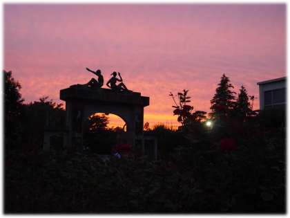3年生が家族と家路へ向かう頃、夕闇に溶ける茜色の空。