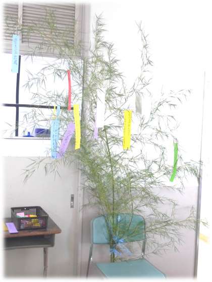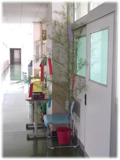 学年のフロアには、7月の風物詩、七夕に向けて、短冊に想いをこめた七夕飾りも登場しました。休み時間にうれしそうに、自分の願いを短冊に書く生徒たちの姿は、微笑ましく感じました。