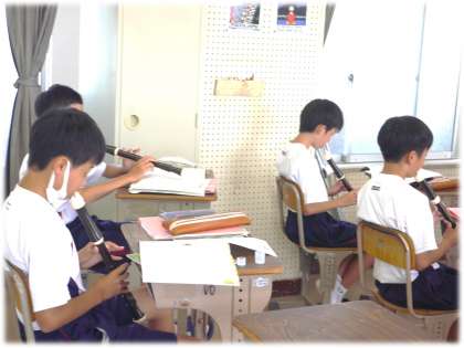 コロナ禍で行えなかった学習の一つです。その音色が、校舎に響くことがうれしくて、教室をのぞくと、1年生が、「喜びの歌」を一生懸命に練習している場面でした。
