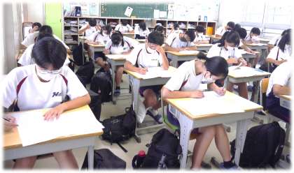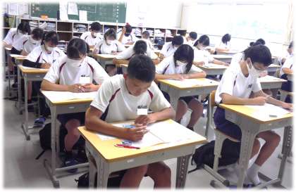 各教室では、緊張感の中に包まれながら、問題に向かう一生懸命な3年生の姿がありました。