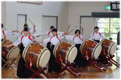 ブラスバンド部に続いて、和太鼓部の演奏です。