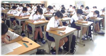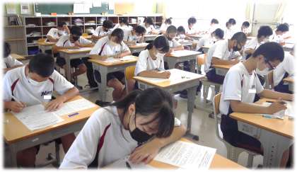 時間いっぱいまで、解答を見直すなどして問題に向かう姿が見れました。テスト後も、すでに気持ちは明日のテストに向かっているようです。