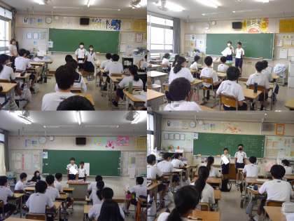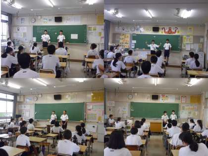 上級生の学級への選挙活動は、想像以上の緊張でいっぱいでしょうが、温かい拍手を送ってくれた先輩の眼差しのやわらかさに、思わず涙ぐむ候補者もいました。すてきな一コマです。