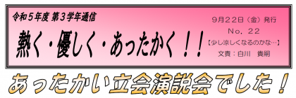 【9月22日発行】3年生学年通信 第22号