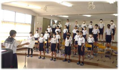 合唱曲の歌い終わりの余韻について、表情や姿勢も意識した練習をしようと取り組んでいます。