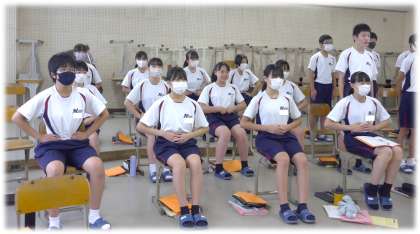テノール、バスの歌唱練習が行われる場面では、その歌声を聴きながら、ソプラノ、アルトパートの生徒たちも呼吸法に取り組んでいます。週1時間の貴重な授業時間の中で、自分たちでどんどん音楽的質を高める方法を実践する姿は、さすが3年生と感心します。