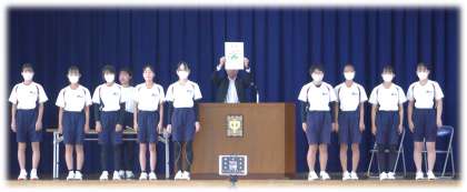 (写真上)世界大会優勝により、教育委員会表彰を受賞した2年生