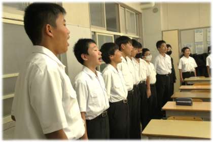 歌声を通して、学級の仲間との心のキャッチボールを行う1年生です。