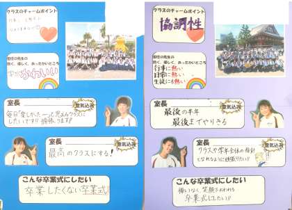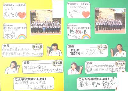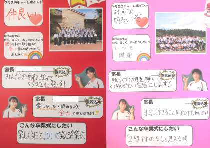 3年生の渡り廊下には、後期室長たちの中学校生活最後の半年間にかける学級への想いが綴られています。