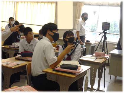 道案内の仕方をペアで一生懸命に練習し合っています。