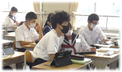 どちらの学年も、学習用タブレットを活用して、テストに向けてこれまで学習した内容の復習を行っていました。