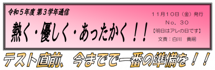 【11月10日発行】3年生学年通信 第30号