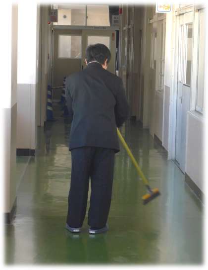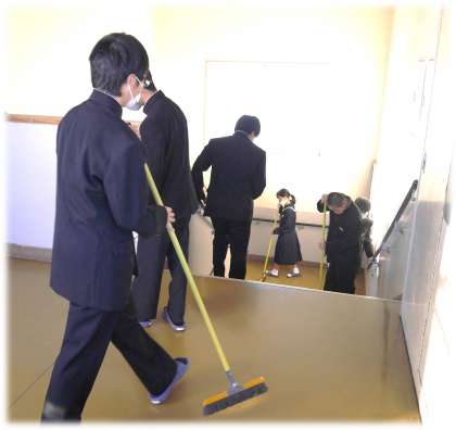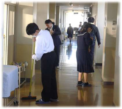 今朝、登校後に1年生フロアを自主的に清掃する1年生の姿があちこちで見られました。