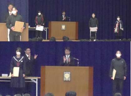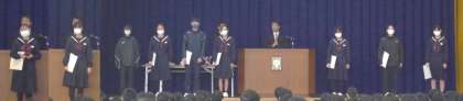 ・JA共済小・中学生書道コンクール「条幅の部」および少年消防クラブ防火作品で優秀な成績を収めた生徒