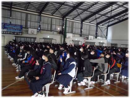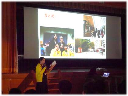 訪問したからこそ気づいた日本との違い、それぞれのよさ、そして本体験から得られたことを、ときにクイズも織り交ぜ、全校生徒の興味も存分に高めながら堂々と自分の言葉で発信する姿は力強く、輝いていました。