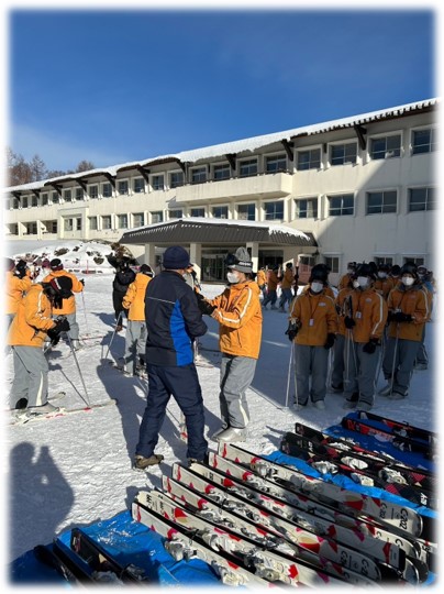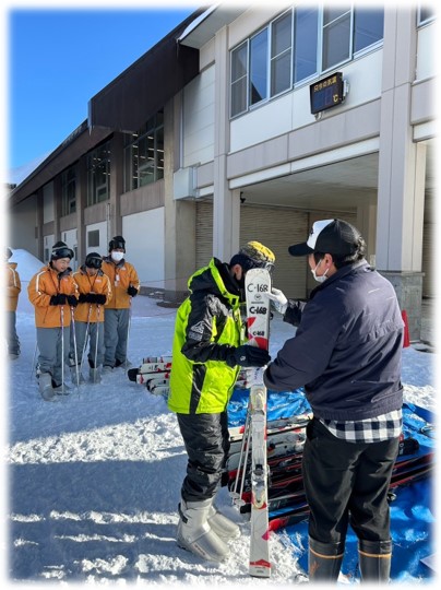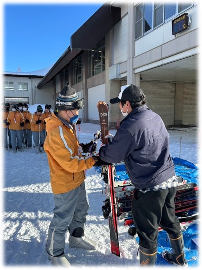 2年生のてきぱきとした動きで、スキーウェアやスキー板合わせも順調に進んでいきます。「どんなときも全力で」この信条のとおり、一人一人が次の動きをよく考え、仲間と声をかけあって行動しています。