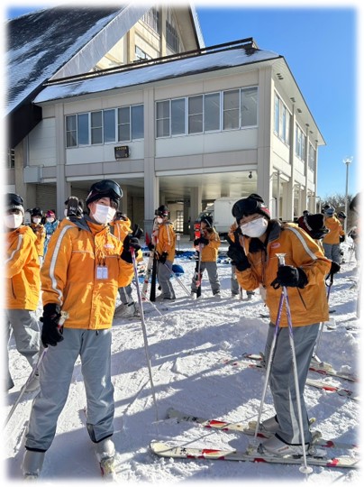 スキー板を装着すると、気分はアルペンスキー選手のよう!
