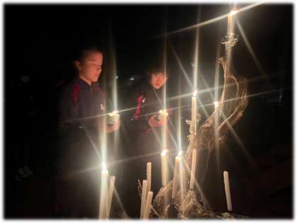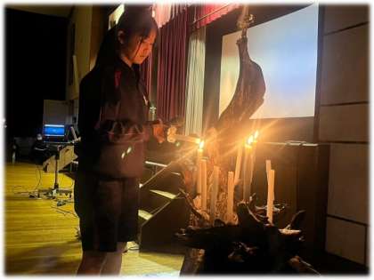 自分の、互いの決意を一人一人の心に灯すため、2年生の決意を見守ってきたキャンドルから分火の儀を行いました。