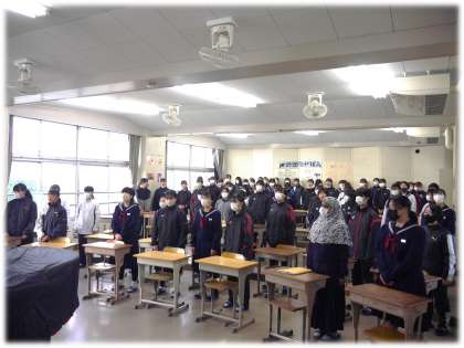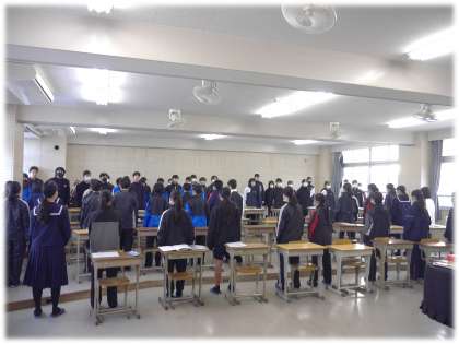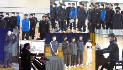 パートごとに、音楽室、体育館と別れて歌声を響かせ合っています。