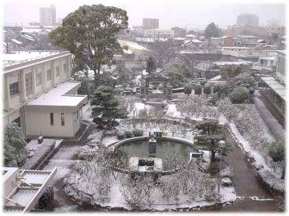 今季一番の冷え込みといわれた今朝、豊南中学校も一面雪化粧となりました。