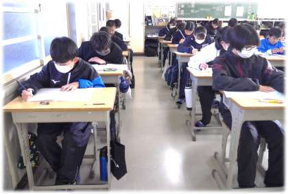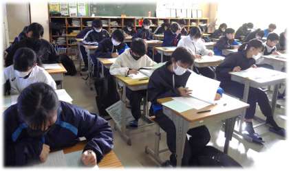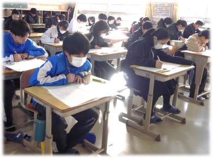 1年生は、中学校入学後初めての学習診断テストに向けて、本番と同じように緊張感をもってプレ学診を行っています。