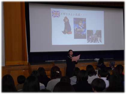 さらに、豊南中学校の代表として海外派遣へ参加した3年生が、クイズを交えながらの参加型の発表を行いました。少し緊張気味だった6年生も、この時間はにこやかにクイズに参加していました。