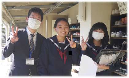 発表が終わった後の3年生、パワーポイントのお手伝いをした仲間と学年主任と一緒に記念撮影!すてきな笑顔でした。