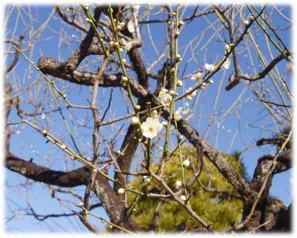 生徒たちが「さようなら」と、さわやかな挨拶をして帰っていく後ろ姿をながめながら、ふと見上げると、正門横の白梅が何輪も花開き、やさしい香りを漂わせていました。今を大切に過ごす豊南中生の姿を見て、まるで「がんばっているね!」と微笑んでいるような白梅の姿です。