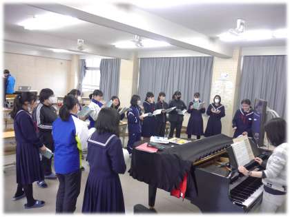 心地よく耳に響く歌声が音楽室から漏れ聞こえてきました。教室をのぞくと、まさに卒業の歌練習の真っ最中でした。各パートごとに音程を確認しあう姿も、不思議と安定感があります。