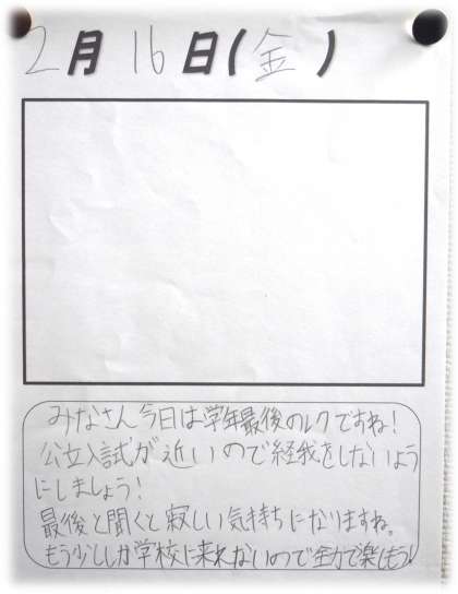 早いもので2月も後半戦。じわりじわりと3年生にとっても「最後の」というフレーズが日常の中で響くようになってきました。