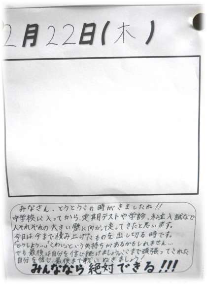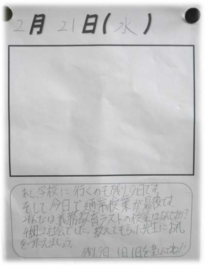いつもの掲示板には、一足早く、明日の分のメッセージも貼られていました。