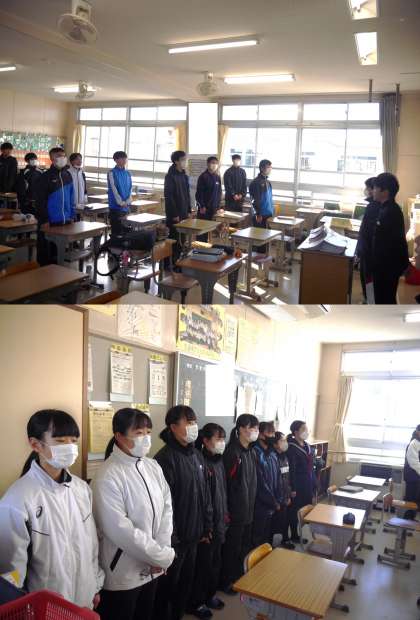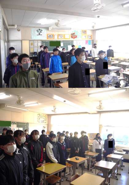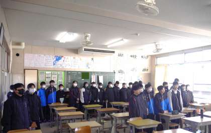 1年生の教室から、卒業式で歌う曲の歌声が聞こえてきました。パートで分かれながら、自分が声を出すことで、仲間と一緒に3年生へ歌声で想いを届けられるように練習に取り組む姿です。きっとこの歌声は、校舎内であたたかく響き、3年生の元へも届いているはずです。