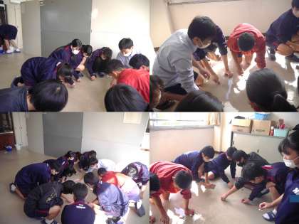 床に額がつくほど顔を近づけて、汚れを取り除こうと雑巾をかける姿。また、汚れが落ちたときに、思わず「やったー!」と一緒に喜ぶ姿。やはり、こんな場面でも、この学年らしい姿があちこちにあふれる時間になりました。