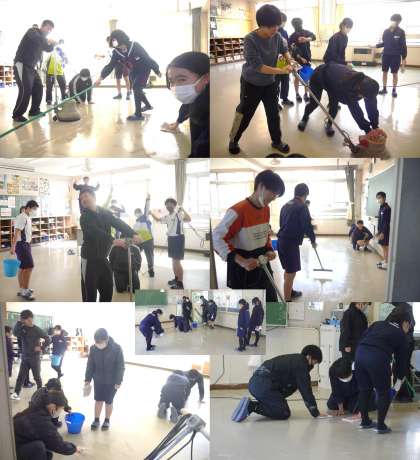 今日の午後、1年間自分たちの居場所として大切にしてきた教室や関係場所の清掃に真剣に取り組む3年生の姿が見られました。