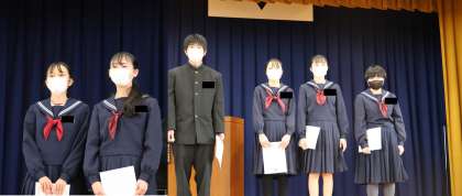 まずはじめに、1年間地域の様々なボランティア活動に意欲的に参加し、地域の方と一緒に自分にできることを、自分のできるときに取り組み続けた2・3年生が、ボランティア表彰を受けました。豊南コミュニティ会議の会長から一人一人賞状が渡されました。3年生は、卒業後も、ぜひ自分のできることでこの豊南学区の一員として、地域を支えるかけがえのない一人として活躍を続けてほしいですね。