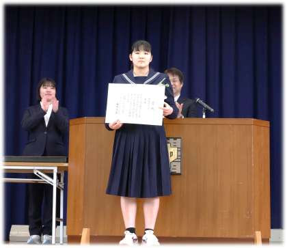 続いて、3年間にわたり他の生徒の模範として、様々な分野で活躍した3年生に豊南ローズ賞が授与されました。
