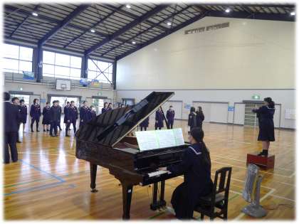 今朝、体育館から3年生の歌声が聞こえてきました。卒業の歌をもっともっと自分たちの納得いくものにしたいと始まった自主練習。一人また一人と体育館に集まっていく3年生です。