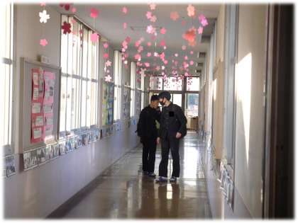 今朝、登校してくる3年生を迎えたのは、1・2年生が先輩を想って準備した多くの「ありがとう」を表す飾りやプレゼントでした。
