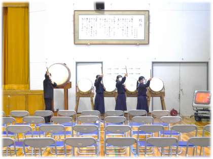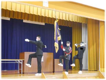 卒業式内での校旗入場で役割のある2年生が、朝から練習に励んでいます。今日の予行練習でも、練習の成果をしっかりと発揮していました。その姿、頼もしいです。
