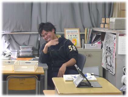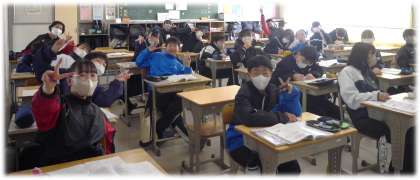 盛り上がっている様子に惹かれて教室をのぞくと、みんながポーズを決めてくれました。何で盛り上がっていたかは・・・。