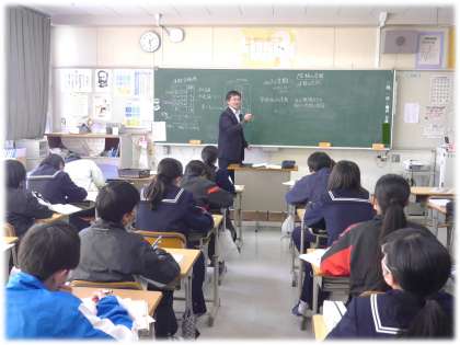 隣の教室も同じく数学科の授業中。タブレット内の電卓を活用して相対度数を求める問題に取り組んでいました。中には、電卓に頼らずに、自力で計算している生徒もいました。