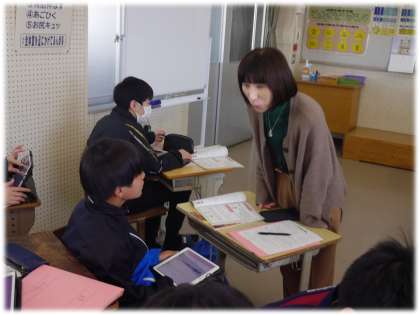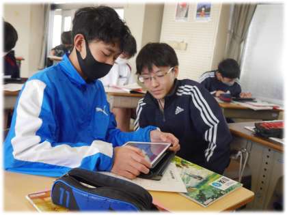 学習用タブレットのアプリを活用して、作曲を行っていました。