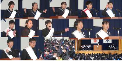 そんな熱い想いを抱き、自分の目指す豊南中の姿、そしてそのために自分が何をするのかをしっかりと語る立候補者の生徒たち。その演説に耳と心を傾ける生徒たち。令和6年度のはじまりに向け、豊南中生の心がすでに動き始めている頼もしさを強く感じる立ち合い演説会でした。