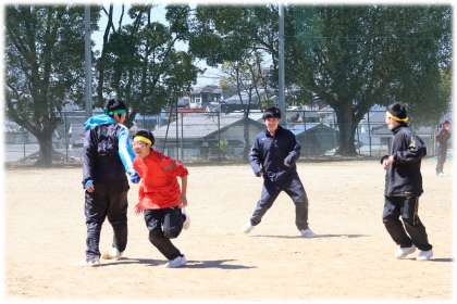 運動場をところせましと、学級色のはちまちをつけて駆け回ります。思いっきり楽しむ場面で、全力投球できる2年生。だからこそ、つかまっても、この笑顔です!