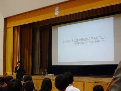 12月16日(月)に、元陸上選手の糟谷悟氏をお招きし、お話を聞きました。ご自身の競技人生を振り返りながら、お互いを理解しあうことの大切さについて考えることができました。