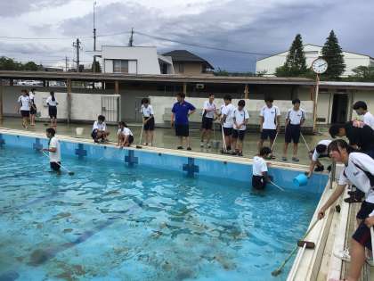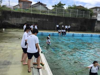 3年生の有志で、プール掃除をしました。