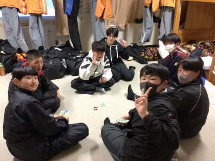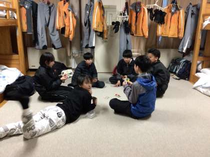 部屋の様子です。2段ベットのお部屋とお布団に分かれていました。UNOやトランプ、おしゃべりも楽しそうな様子でした♪