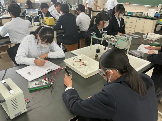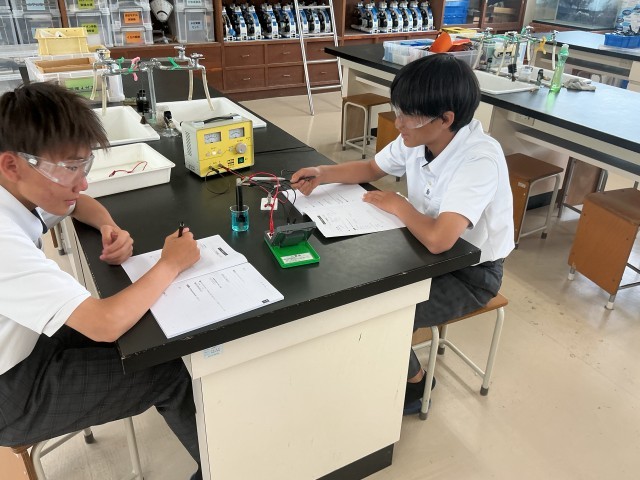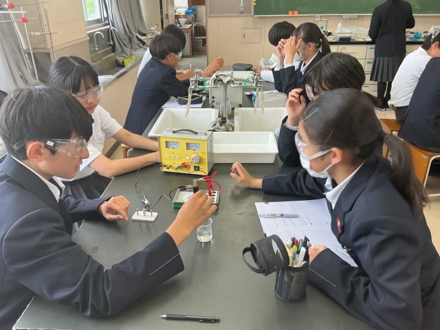 中学3年生の理科の授業で、いろいろな水溶液に電気が流れるかを調べる実験をしました。水溶液の種類によって電気が流れるものと流れないものがあり、驚きの声が上がっていました。楽しみながら、水溶液の性質について理解を深めていました。