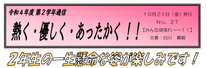 遅くなりました。28号です。 2年生は明日から職場体験学習に出かけます。素敵な出...