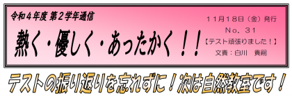 【11月18日発行】2年生学年通信 第31号